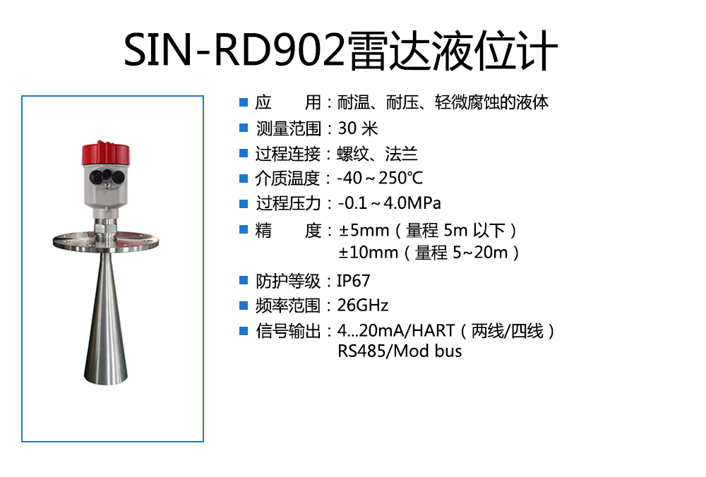 聯測_SIN-RD902雷達液位計_適用于高溫高壓的液體_